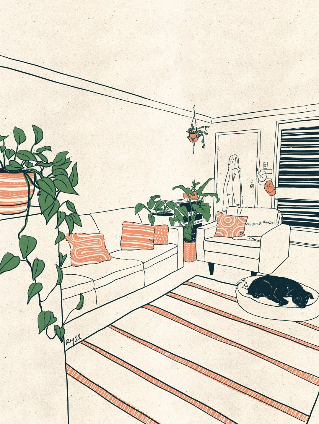 A series of illustrations from living rooms past and present